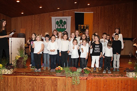 | Der Kinderchor Vokal total unter Leitung von Laura Glasbrenner gestaltet den Ehrenabend musikalisch mit. |